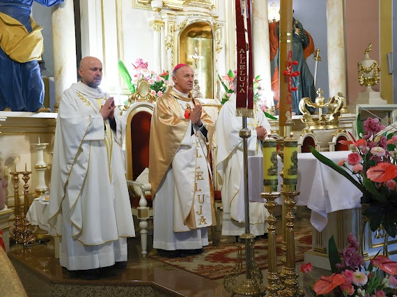Liturgii przewodniczył i Sakramentu udzielił ks.Bp Marek Solarczyk, pasterz naszej diecezji. Wraz z nim Eucharystię celebrowali proboszcz ks. Ireneusz Kosecki - proboszcz oraz ks. Dominik Dryja.